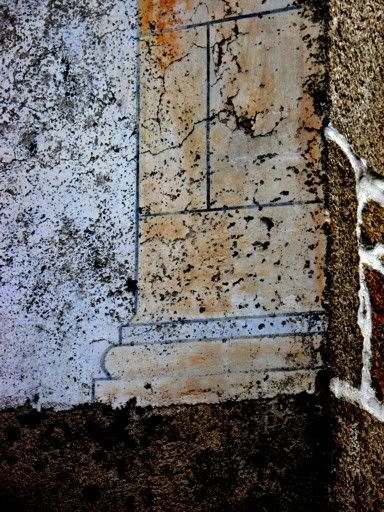 É nestas casas rebocadas que encontramos um interessante tratamento dado a pormenores arquitectónicos. Não sei se por uma questão económica ou prática, simulavam-se enfeites e partes de construção através da pintura. Surgem, deste modo, em esquinas molduras com bases e capitéis desenhados, e frisos, também pintados, por debaixo dos beirais.