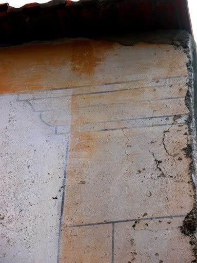 - Pormenores da casa da foto de cima. À esquerda a base desenhada e à direita o capitel e o friso.