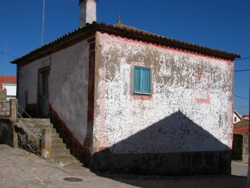 - Casa junto à Praça, no início da rua do Praça que segue para o largo da Fonte. Na fachada rebocada observamos partes de uma arquitectura “fingida”. A outra fachada já foi picada ficando a pedra a amostra.